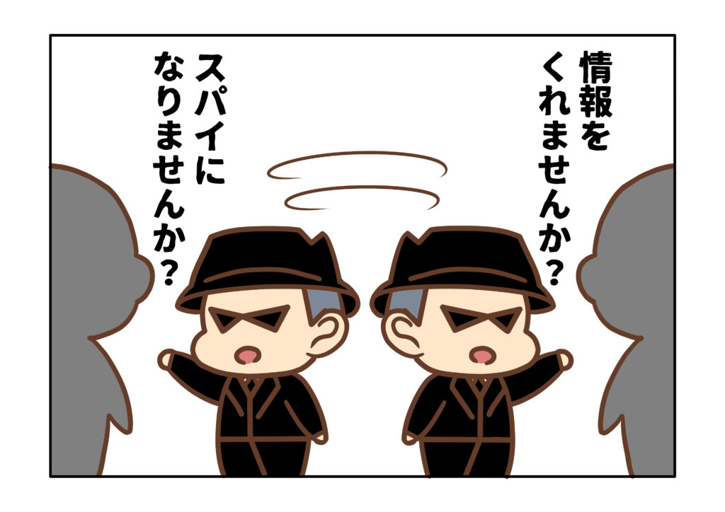 スパイって、情報収集のために秘密を守りながらも、説明が求められる部分については公開しなければならないなんて、これは秘密と公表という真逆の作用を同時にやることになりませんか!?思ったよりも大変な仕事なんだな・・・