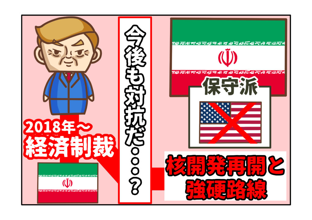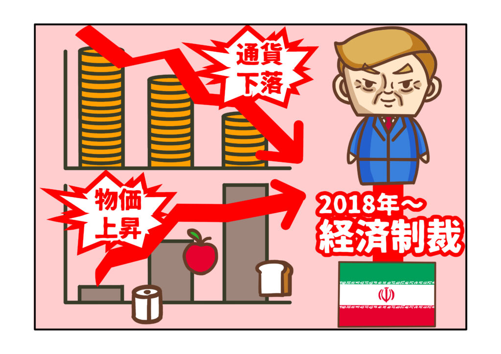 イランがトランプ次期政権をこうまでして警戒することになったことには、明確な理由があります。それは、核開発合意の一方的な破棄と核開発疑惑を理由とした経済制裁です。イランは、この経済制裁によって、2018年以降、国内経済が大幅に悪化しました。
