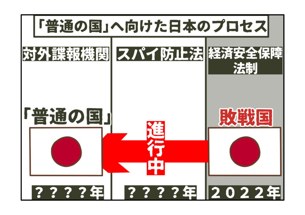 今後は、経済安全保障法制の枠組みを拡大し、スパイ行為に関する規定を盛り込んでいけば、「スパイ防止法」と何ら変わらない法律へ生まれ変わることも可能です。そして、「対外諜報機関」の設立に向けた体制がようやく整うことになります。