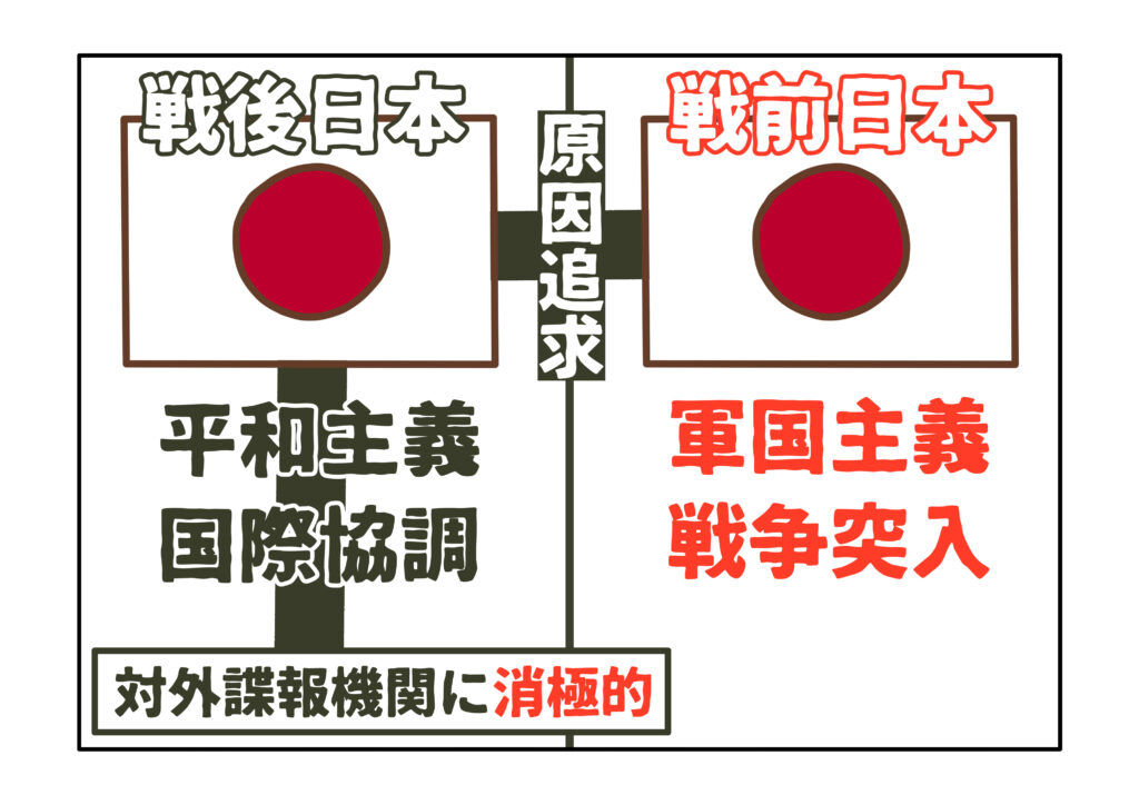 こうした事情は、日本の国防に限らず、諜報においても同様です。日本の諜報機関は、自衛隊と同様に最小限度でなくてはならず、CIAのような本格的な対外諜報機関を設置できません。対外諜報機関には、他国との戦争準備のために情報収集する一面があるからです。