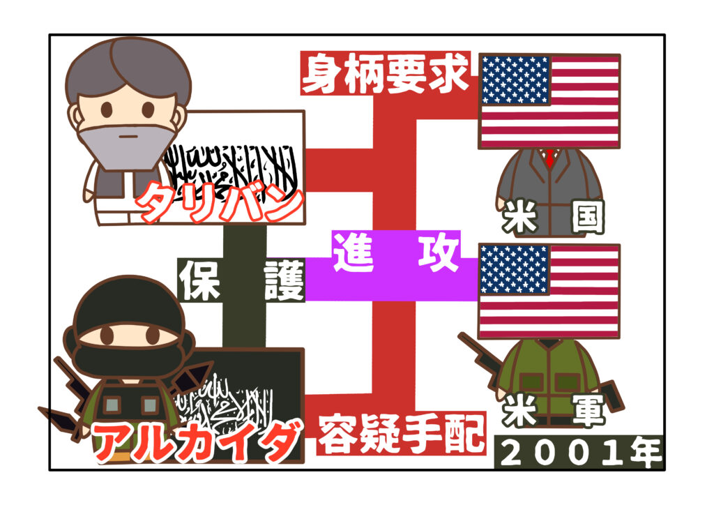 米国同時多発テロの実行犯と目されたのは、オサマ・ビン・ラディン率いる国際テロ組織アルカイダです。ラディン容疑者は、ソ連のアフガニスタン侵攻で抵抗運動に加わった経緯があり、発生当時は、アフガニスタンに身を寄せていました。アルカイダは、米国同時多発テロの発生前から、米国に「ジハード」と称した武装活動を行っており、米国の追及を逃れるためにタリバンに保護を求めていたのです。