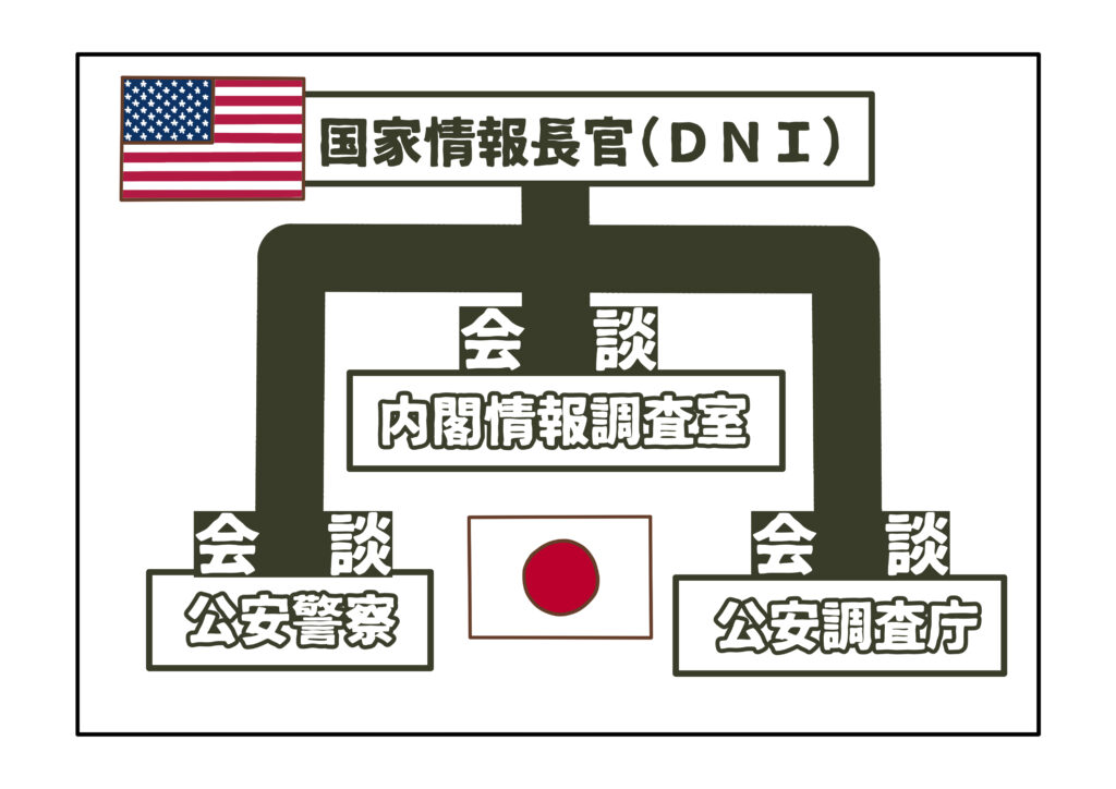 CIA東京支局は現在、日本側の①内閣情報調査室、②公安警察、③公安調査庁、④外務省国際情報統括官組織、そして⑤防衛省情報本部それぞれと回線を開いており、いついかなる時も「情報交換」という形で一方的に指示しています。