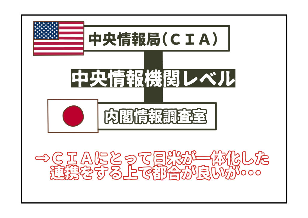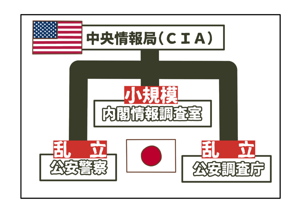 内閣情報調査室は当初、CIAに倣って、日本政府内を横断する中央情報機関となる構想がありました。CIAにとっては、日本の「スパイ活動」を自分たちと一体化する上で、都合が良かったためです。