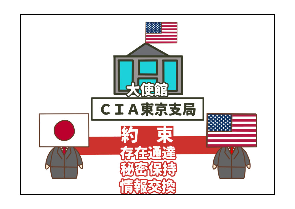 日本の「情報機関」それぞれに対し、CIA東京支局の存在を通達するとともに、その存在を秘密にしつつ、情報機関レベルの情報交換を行うよう約束されたのです。日本の「情報機関」は、一方的な約束を迫られ、応じるほかありませんでした。