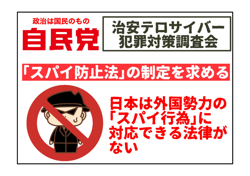 近年、「別班」のような国家の情報収集機能をめぐる動きに、新たな展開が見られています。2025年5月、自民党の治安・テロ・サイバー犯罪対策調査会(会長:高市早苗・前経済安全保障担当相)は、石破茂首相に対して「スパイ防止法」の制定を求める正式な提言を提出しました。