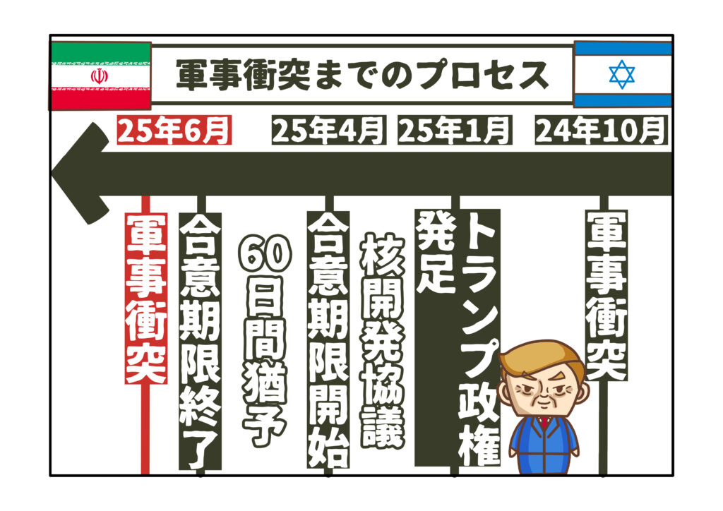ただ、2025年1月、米国でトランプ新政権が発足すると、核開発をめぐるイランとの協議は急速に緊張を帯びはじめます。新政権は、イランに対して「核兵器の完全放棄」や「無条件降伏」といった強硬な条件を突きつけ、ウラン濃縮活動の即時停止を要求しました。