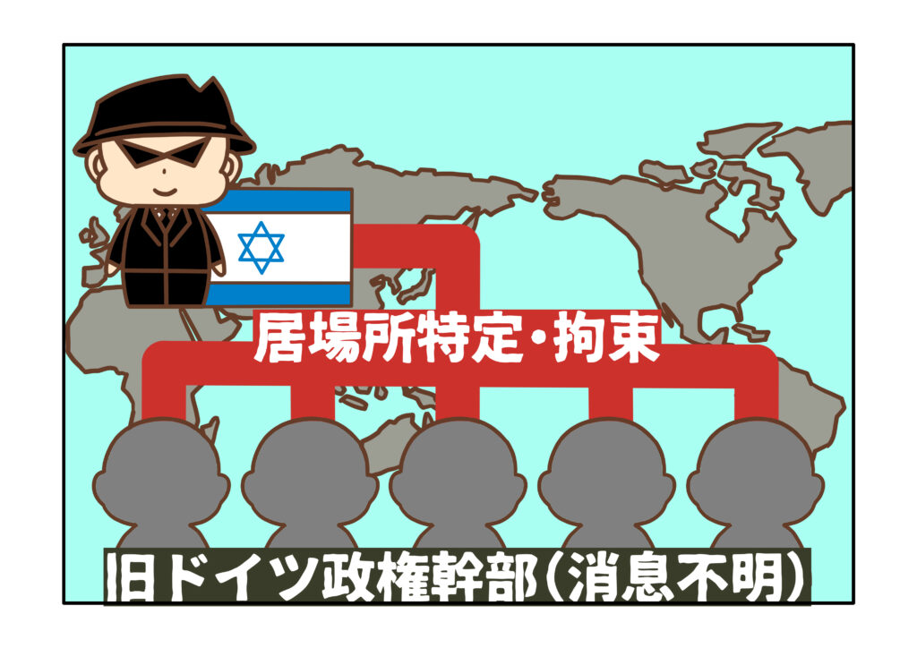 ナチス高官の多くは、ベルリン陥落時に死亡または連合国によって拘束されましたが、一部はドイツ国外に逃亡し、その後の足取りを絶っていました。こうした逃亡者の居場所を突き止め、拘束し、裁判にかけるという任務を引き受けたのがモサドでした。