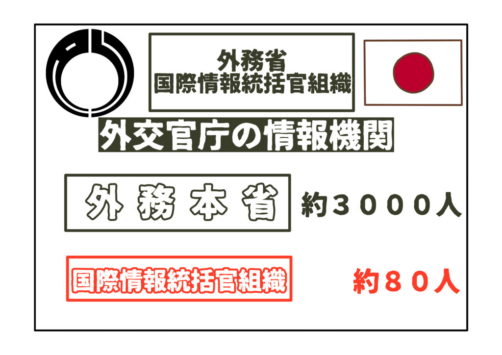 外務省全体では約3000人が勤務していることを踏まえると、この情報部門の規模は非常に小さく、存在感が限定的であることがわかります。80人ほどであれば、通常の事務室1~2室に収まる規模。まさに“外交官庁の片隅”で、静かに情報収集を担っている「情報機関」と言えるでしょう。